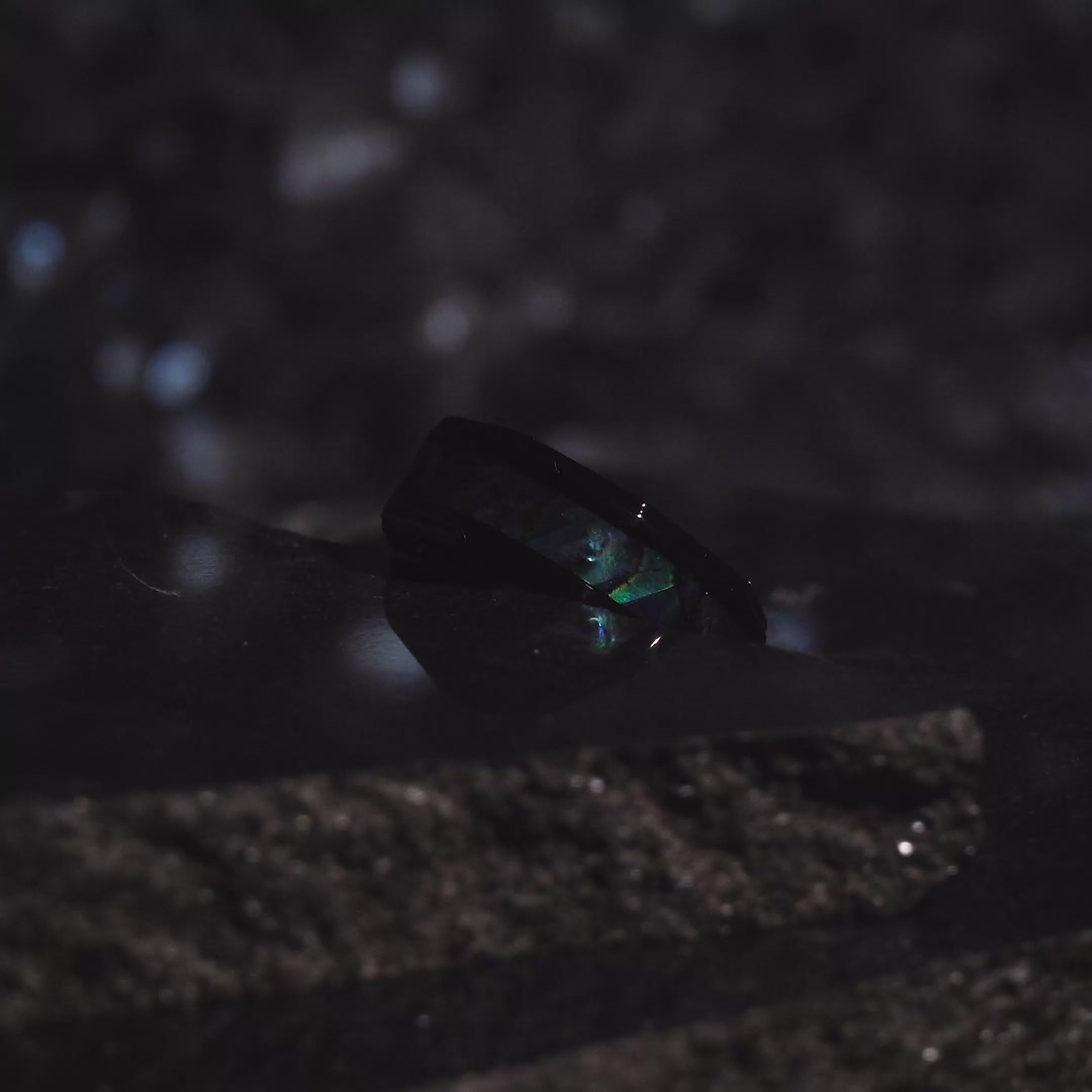Die tiefschwarze Farbe schafft eine Aura des Geheimnisses und der Stärke, während die Abalone-Muschel als wunderschöne Einlage
