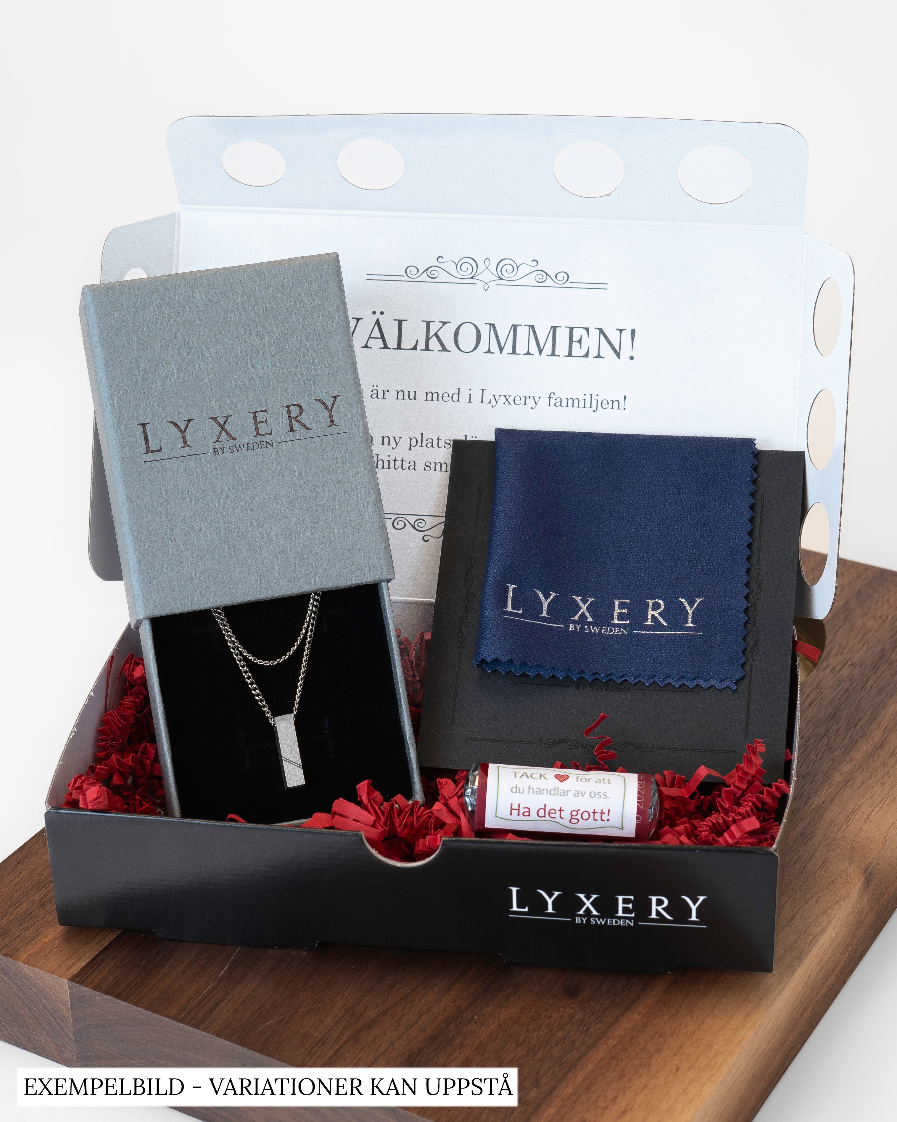 At Lyxery you will find jewelry with modern design, high quality and fast delivery. All our jewelry comes in beautiful boxes - and you can easily choose to gift wrapping and personal greeting at checkout.