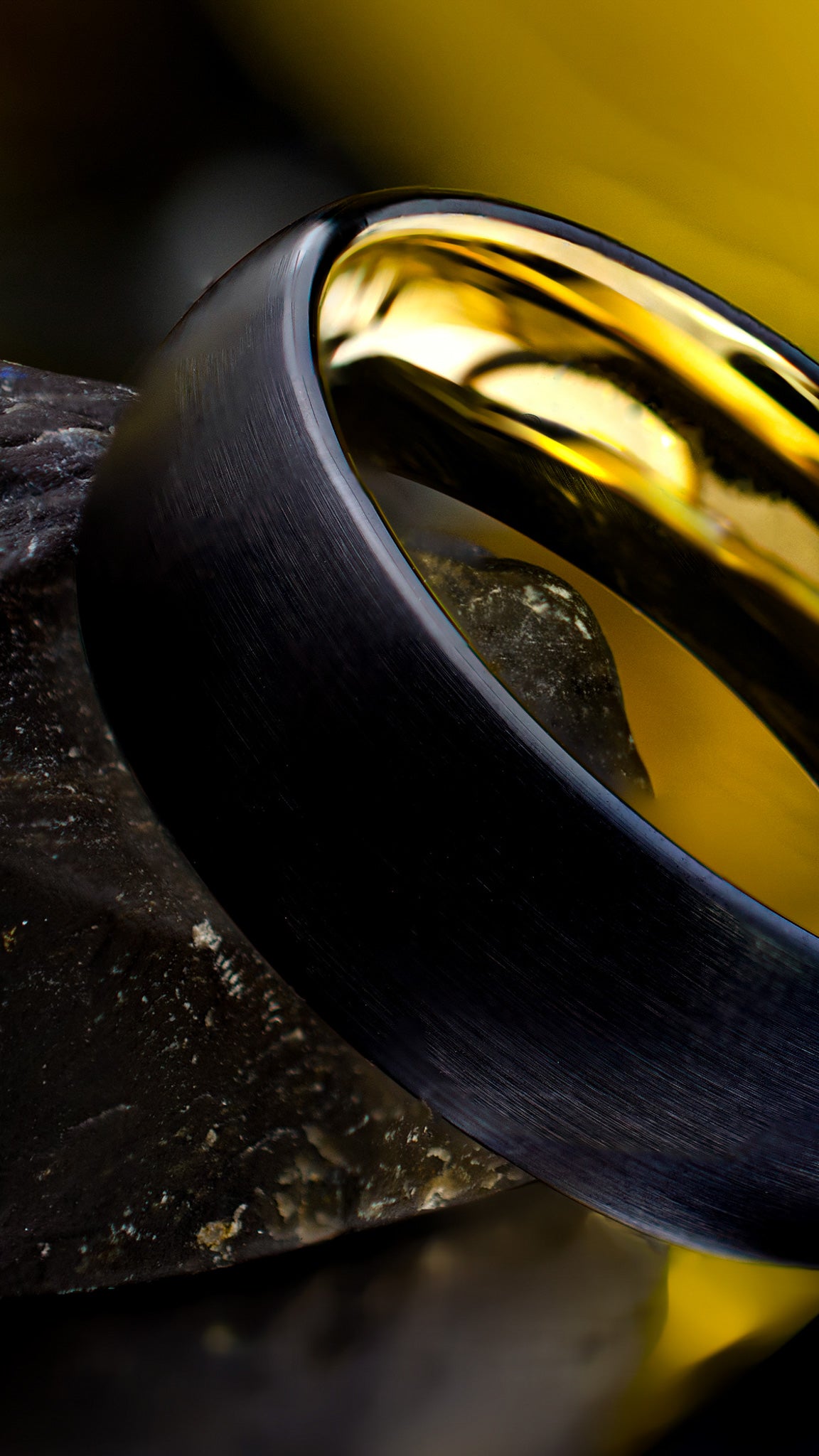 Varje detalj är noga utformad för att skapa en följsam och behaglig silhuett som smyger sig mjukt runt fingret. Den svarta ytan ger en känsla av mystik och sofistikering, medan den guldiga insidan ger en överraskande och lyxig kontrast.