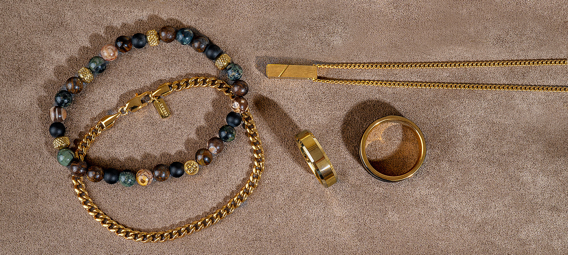 Förgyllda smycken med 18 Karat guld. Tillsammans i en stilren kombination som fungerar utmärkt till vardags och fest! Tillverkade i 316L Kirurgiskt stål.