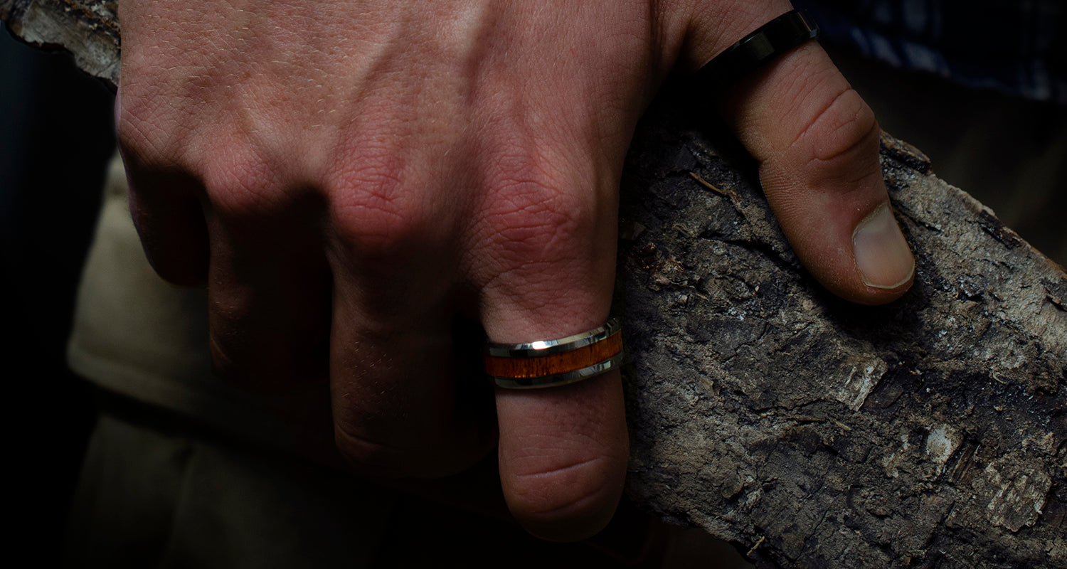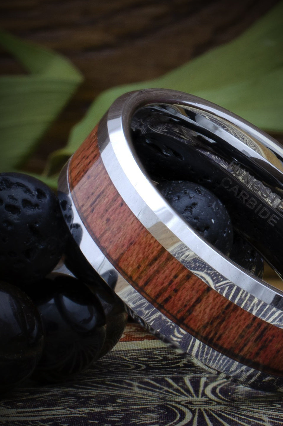 Detta tillför inte bara en vacker trädetalj utan även en koppling till konstnärlighet och hantverk. Sapelträets vackra naturliga mönster löper runt ringen och skapar en visuellt tilltalande kontrast mot det borstade metalliska ytan.